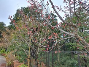 数日前に暖かい日が続いたので 風の丘の河津桜が咲き始めました。